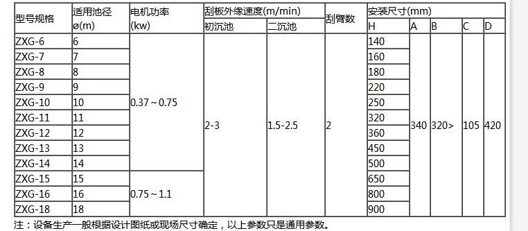 由中 心传动设备驱动传动轴、刮臂等旋转,刮臂上的刮板将污泥由池边逐步刮至池中 心的泥坑中,经过排泥管排出池外;刮臂上固定有搅拌栅条,旋转时对污泥搅动使水和气体外溢,提供絮状污泥的沉淀空间,加快污泥的下沉,进步浓缩作用。原水经中 心配水筒布水后呈辐射流向池子周边溢水槽,随着流速的降低,水体中的悬浮物被别离而沉降于池底,上清液经过溢流堰板由出水槽排出池外。经过减速驱动和悬挂式组件的传动,由刮板将污泥刮集到中 心集泥槽,依托静水压力或泵排出池外。选用中间进水和排泥,周边排水,确保水流均匀。使用液位差自吸式排泥,有浮渣刮集排除设备和过载保护设备。